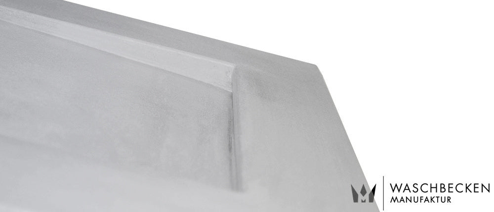Beton ist ein natürlicher Werkstoff, jedes Waschbecken und jeder Waschtisch wird einzeln und individuell in Handarbeit auf Bestellung für Sie produziert. Beachten Sie daher, dass es sich bei jedem Werkstück um ein Unikat handelt, d.h. Lufteinschlüsse in der Oberflächenstruktur, erkennbare Materialschichtungen, minimale Verfärbungen, leichte Streifen bzw. Wolkenbildung in der Oberfläche sowie kleine Schwindrisse stellen keine Mängel dar.