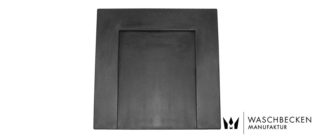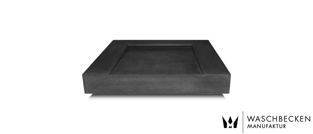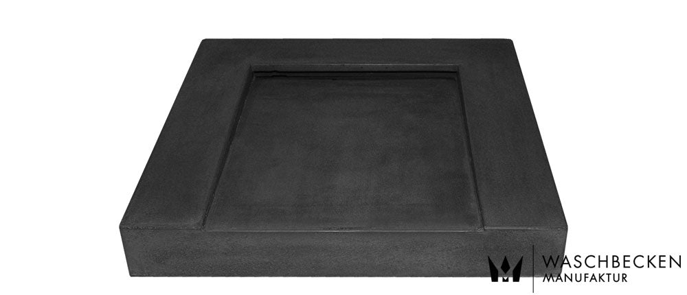 Der Grundton ist eingefärbter Beton in anthrazit, um die Oberfläche noch dunkler zu bekommen wird die Oberfläche mit unserer patentierten Betonfarbe mehrfach „lackiert“ und anschließend matt beschichtet, der Aufpreis für diese Variante beträgt € 100.-