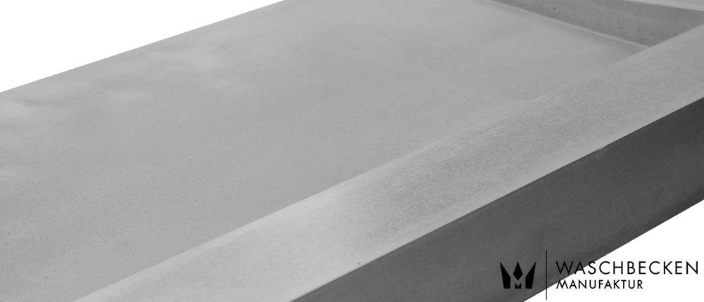 Beton ist ein natürlicher Werkstoff, jedes Waschbecken und jeder Waschtisch wird einzeln und individuell in Handarbeit auf Bestellung für Sie produziert. Beachten Sie daher, dass es sich bei jedem Werkstück um ein Unikat handelt, d.h. Lufteinschlüsse in der Oberflächenstruktur, erkennbare Materialschichtungen, minimale Verfärbungen, leichte Streifen bzw. Wolkenbildung in der Oberfläche sowie kleine Schwindrisse stellen keine Mängel dar.