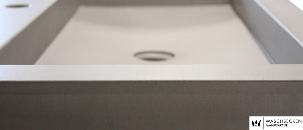 Beton ist ein natürlicher Werkstoff, jedes Waschbecken und jeder Waschtisch wird einzeln und individuell in Handarbeit auf Bestellung für Sie produziert. Beachten Sie daher, dass es sich bei jedem Werkstück um ein Unikat handelt, d.h. Lufteinschlüsse in der Oberflächenstruktur, erkennbare Materialschichtungen, minimale Verfärbungen, leichte Streifen bzw. Wolkenbildung in der Oberfläche sowie kleine Schwindrisse stellen keine Mängel dar.
