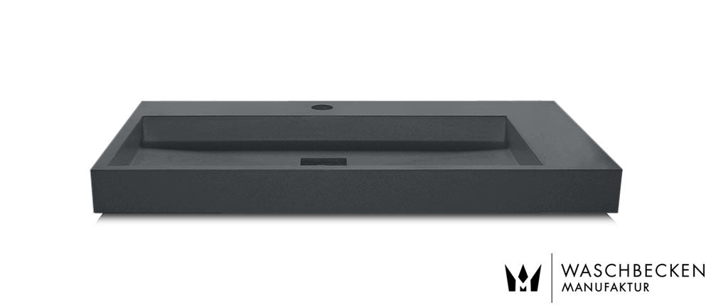 Schwarz matt ist aktuell sehr gefragt. So schön diese Farbe bei Betonwaschbecken ist, so pflegeintensiv ist sie auch, denn auf schwarzen Oberflächen sieht man jeden Wasserspritzer und jeden Seifenspritzer. Wir vergleichen es immer mit einem schwarzen Auto: Frisch geputzt wunderschön, 5-mal um den Block gefahren, kann man es schon wieder putzen. Ähnlich verhält sich ein schwarz mattes Betonwaschbecken in der täglichen Nutzung.