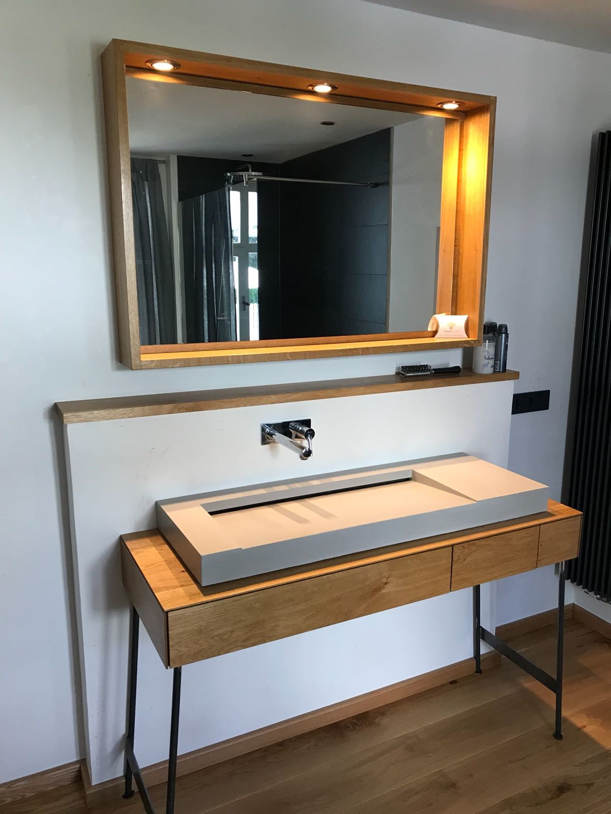 Hier sollten Sie sich vorab mit Ihrem Schreiner abstimmen, ob der Unterschrank das Gewicht des Betonwaschbeckens tragen kann. Falls nicht, hätten wir auch dafür eine passende Lösung – nehmen Sie gerne Kontakt mit uns auf.