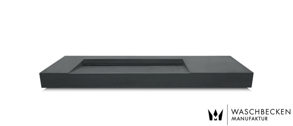 Schwarz matt ist aktuell sehr gefragt. So schön diese Farbe bei Betonwaschbecken ist, so pflegeintensiv ist sie auch, denn auf schwarzen Oberflächen sieht man jeden Wasserspritzer und jeden Seifenspritzer. Wir vergleichen es immer mit einem schwarzen Auto: Frisch geputzt wunderschön, 5-mal um den Block gefahren, kann man es schon wieder putzen. Ähnlich verhält sich ein schwarz mattes Betonwaschbecken in der täglichen Nutzung.
