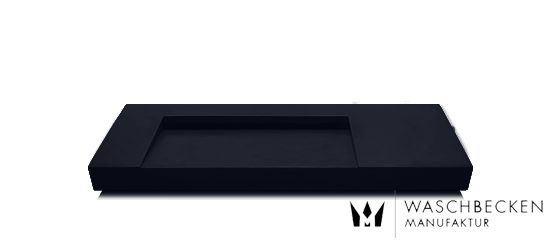 Der Grundton ist eingefärbter Beton in anthrazit, um die Oberfläche noch dunkler zu bekommen wird die Oberfläche mit unserer patentierten Betonfarbe mehrfach „lackiert“ und anschließend matt beschichtet, der Aufpreis für diese Variante beträgt € 100.-