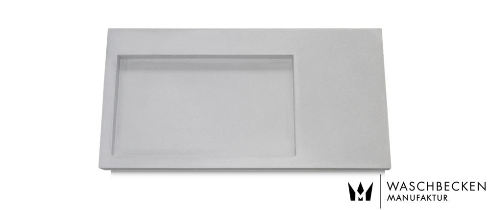 95cm x 50cm x 8cm (BxTxH) Erhältlich mit oder ohne Hahnloch |