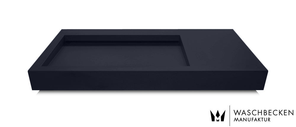 Schwarz matt ist aktuell sehr gefragt. So schön diese Farbe bei Betonwaschbecken ist, so pflegeintensiv ist sie auch, denn auf schwarzen Oberflächen sieht man jeden Wasserspritzer und jeden Seifenspritzer. Wir vergleichen es immer mit einem schwarzen Auto: Frisch geputzt wunderschön, 5-mal um den Block gefahren, kann man es schon wieder putzen. Ähnlich verhält sich ein schwarz mattes Betonwaschbecken in der täglichen Nutzung.