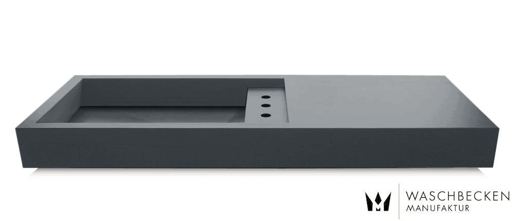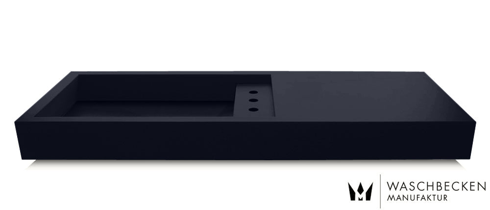 Schwarz matt ist aktuell sehr gefragt. So schön diese Farbe bei Betonwaschbecken ist, so pflegeintensiv ist sie auch, denn auf schwarzen Oberflächen sieht man jeden Wasserspritzer und jeden Seifenspritzer. Wir vergleichen es immer mit einem schwarzen Auto: Frisch geputzt wunderschön, 5-mal um den Block gefahren, kann man es schon wieder putzen. Ähnlich verhält sich ein schwarz mattes Betonwaschbecken in der täglichen Nutzung.