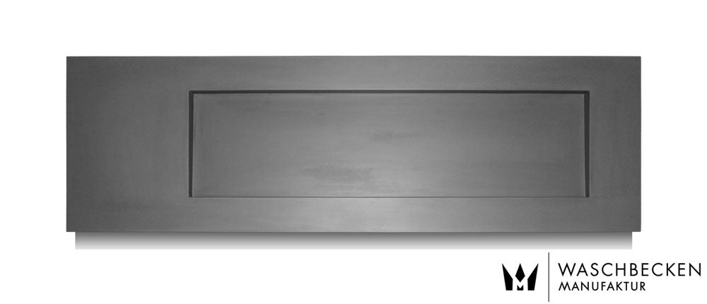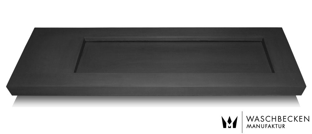 Der Grundton ist eingefärbter Beton in anthrazit, um die Oberfläche noch dunkler zu bekommen wird die Oberfläche mit unserer patentierten Betonfarbe mehrfach „lackiert“ und anschließend matt beschichtet, der Aufpreis für diese Variante beträgt € 100.-