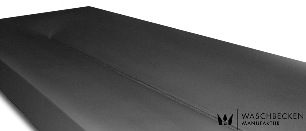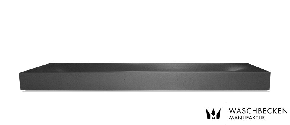 Schwarz matt ist aktuell sehr gefragt. So schön diese Farbe bei Betonwaschbecken ist, so pflegeintensiv ist sie auch, denn auf schwarzen Oberflächen sieht man jeden Wasserspritzer und jeden Seifenspritzer. Wir vergleichen es immer mit einem schwarzen Auto: Frisch geputzt wunderschön, 5-mal um den Block gefahren, kann man es schon wieder putzen. Ähnlich verhält sich ein schwarz mattes Betonwaschbecken in der täglichen Nutzung.
