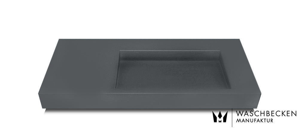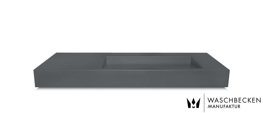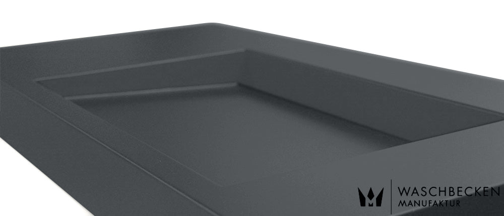 Schwarz matt ist aktuell sehr gefragt. So schön diese Farbe bei Betonwaschbecken ist, so pflegeintensiv ist sie auch, denn auf schwarzen Oberflächen sieht man jeden Wasserspritzer und jeden Seifenspritzer. Wir vergleichen es immer mit einem schwarzen Auto: Frisch geputzt wunderschön, 5-mal um den Block gefahren, kann man es schon wieder putzen. Ähnlich verhält sich ein schwarz mattes Betonwaschbecken in der täglichen Nutzung.
