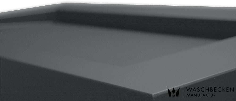 Schwarz matt ist aktuell sehr gefragt. So schön diese Farbe bei Betonwaschbecken ist, so pflegeintensiv ist sie auch, denn auf schwarzen Oberflächen sieht man jeden Wasserspritzer und jeden Seifenspritzer. Wir vergleichen es immer mit einem schwarzen Auto: Frisch geputzt wunderschön, 5-mal um den Block gefahren, kann man es schon wieder putzen. Ähnlich verhält sich ein schwarz mattes Betonwaschbecken in der täglichen Nutzung.